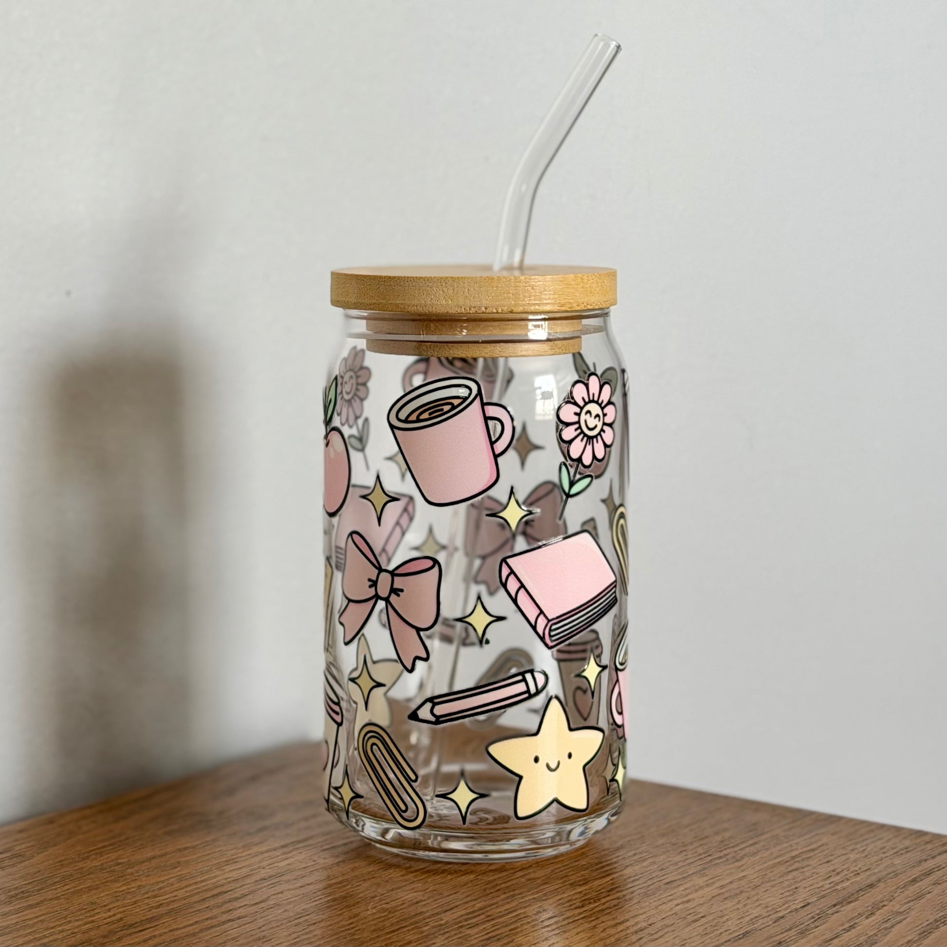 ~Clear glass straw and lid are included.