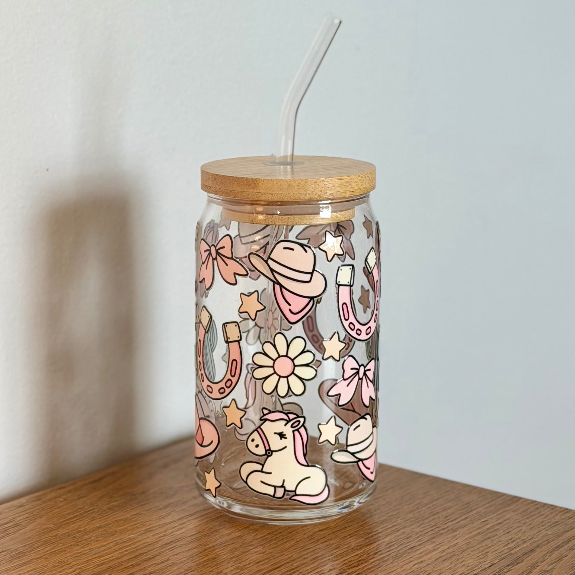 ~Clear glass straw and lid are included.
